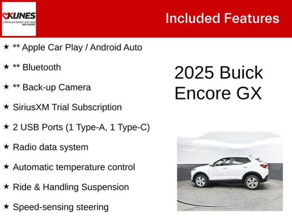 While we make every effort to ensure the data listed here is correct, there may be instances where some of the factory rebates, incentives, options or vehicle features may be listed incorrectly as we get data from multiple data sources. PLEASE MAKE SURE to confirm the details of this vehicle with the dealer to ensure its accuracy. Dealer cannot be held liable for data that is listed incorrectly. * MSRP is the Manufacturer's Suggested Retail Price (MSRP) of the vehicle. It does not include any tax, title, license or $377.63 documentary service fee. Consult the dealer for fees, payments and complete details. * Offers, incentives, discounts, or financing are subject to expiration and other restrictions. See dealer for qualifications and complete details. * In transit means that vehicles have been built but have not yet arrived at our dealership; images shown may not necessarily represent exact vehicles in transit to your dealership. See your dealer for complete details. Consumers, please be aware that the above advertised price assumes you are purchasing the vehicle from the Kunes Auto Group dealership where it is listed as being offered for sale. If the vehicle is transferred from one location to another, a transfer fee for this transportation of $300 will be added to the purchase transaction. If you would like to purchase such vehicle without paying a transfer fee, you can take delivery of the vehicle at the store it is listed as being sold from and avoid the additional transfer fee. Shipping fees vary depending on location, contact dealer for shipping details and costs. *Any MPG listed is based on model year EPA mileage ratings. Use for comparison purposes only. Your actual mileage will vary, depending on how you drive and maintain your vehicle, driving conditions, battery pack age/condition (hybrid only) and other factors. Max payload/towing estimate ratings shown. Additional options, equipment, passengers, and cargo weight may affect payload/towing weights. See dealer for details. * MSRP is the Manufacturer's Suggested Retail Price (MSRP) of the vehicle. It does not include any taxes, fees or other charges. Pricing and availability may vary based on a variety of factors, including options, dealer, specials, fees, and financing qualifications. Consult your dealer for actual price and complete details. Vehicles shown may have optional equipment at additional cost. *Pricing provided may vary significantly between website and dealer as a result of supply chain constraints. Pricing shown is non-binding and does not constitute an offer. Contact your dealer for updated vehicle pricing. * The estimated selling price that appears after calculating dealer offers is for informational purposes, only. You may not qualify for the offers, incentives, discounts, or financing. Offers, incentives, discounts, or financing are subject to expiration and other restrictions. See dealer for qualifications and complete details. * Images, prices, and options shown, including vehicle color, trim, options, pricing and other specifications are subject to availability, incentive offerings, current pricing and credit worthiness. * Max payload/towing estimate ratings shown. Additional options, equipment, passengers, and cargo weight may affect payload/towing weights. See dealer for details. * In transit means that vehicles have been built, but have not yet arrived at your dealer. Images shown may not necessarily represent identical vehicles in transit to your dealership. See your dealer for actual price, payments and complete details.