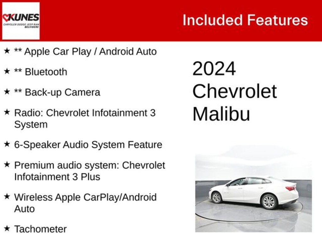2024 Chevrolet Malibu LT 1LT Summit White FWD 1.5L DOHC