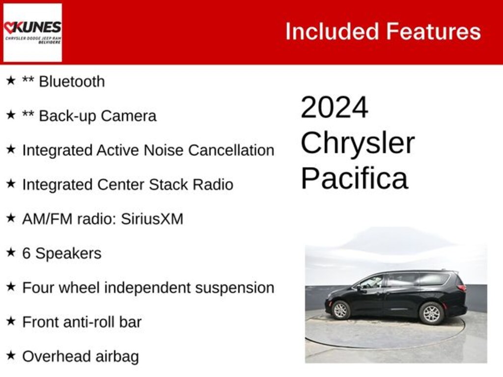 Recent Arrival! 2024 Chrysler Pacifica Touring L FWD ** Bluetooth, ** Back-up Camera, 6 Speakers, AM/FM radio: SiriusXM, Delay-off headlights, Disassociated Touchscreen Display, Four wheel independent suspension, Front anti-roll bar, Integrated Active Noise Cancellation, Integrated Center Stack Radio, Overhead airbag, Reclining 3rd row seat, Voltmeter.