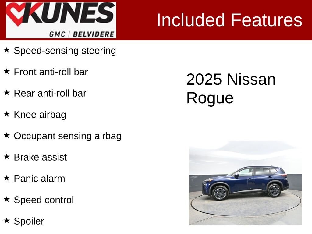 2025 Nissan Rogue SV Deep Ocean Blue Pearl AWD 1.5L DOHCRecent Arrival! Clean CARFAX. CARFAX One Owner. AWD capability with Intelligent All-Wheel Drive. 8 color touchscreen display with Wi-Fi hotspot. Blind spot warning and rear cross-traffic alert. Forward and rear automatic emergency braking with pedestrian detection. Adaptive cruise control with full speed range and stop & go. Rear parking sensors and backup camera. Lane departure warning with lane intervention and blind spot assist. Heated front seats and heated outside mirrors. Dual-zone automatic climate control. Remote engine start system with intelligent climate control. LED headlights and LED daytime running lights. Power liftgate for easy cargo access. Smart key with push-button start. NissanConnect connected services with Apple CarPlay and Android Auto. 6-speaker audio system. Alloy wheels. Advanced driver attention alert and traffic sign recognition. Hill start assist and brake assist. Tire pressure monitoring system with easy-fill alert. Split-fold rear seats for added cargo flexibility.