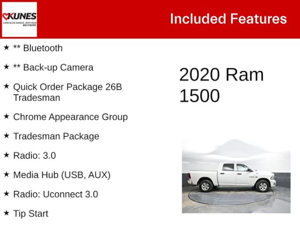 2020 Ram 1500 Classic Tradesman 4WD ** Bluetooth, ** Back-up Camera, 1500 Classic Tradesman, HEMI 5.7L V8 Multi Displacement VVT, 8-Speed Automatic, 4WD, Diesel Gray/Black Vinyl, 17" x 7" Aluminum Wheels, 17" x 7" Steel Wheels, Bright Front Bumper, Bright Grille, Bright Rear Bumper, Center Hub, Chrome Appearance Group, Driver door bin, Front Center Armrest, Front wheel independent suspension, Integrated Voice Command w/Bluetooth, Media Hub (USB, AUX), Overhead airbag, Passenger door bin, Quick Order Package 26B Tradesman, Radio: 3.0, Radio: Uconnect 3.0, Rear anti-roll bar, Rear seat center armrest, Storage Tray, Tip Start, Tradesman Package, Voltmeter.